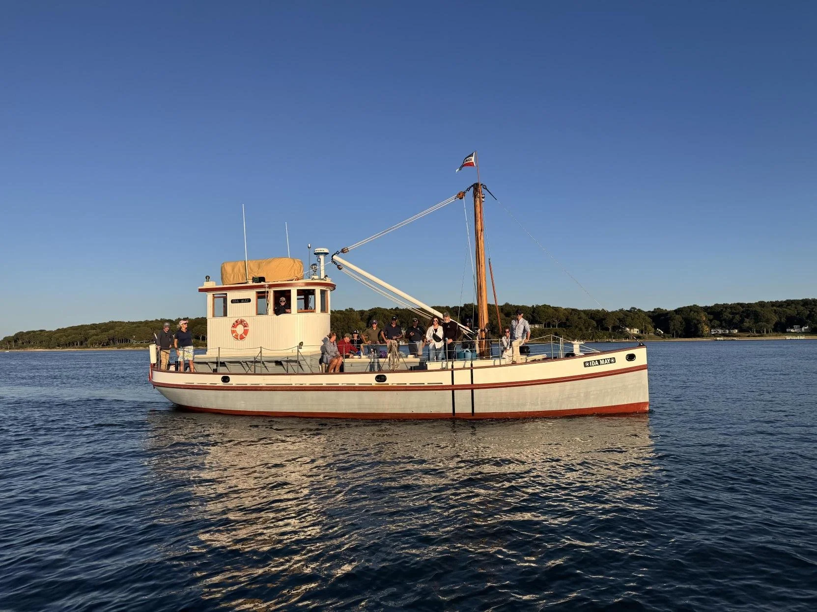 The current IDA MAY is a faithful replica of the original vessel, designed to closely mirror her historic form while incorporating modern U.S. Coast Guard safety requirements. These updates allow the vessel to safely carry passengers while maintaining the character and proportions of the original dredge.